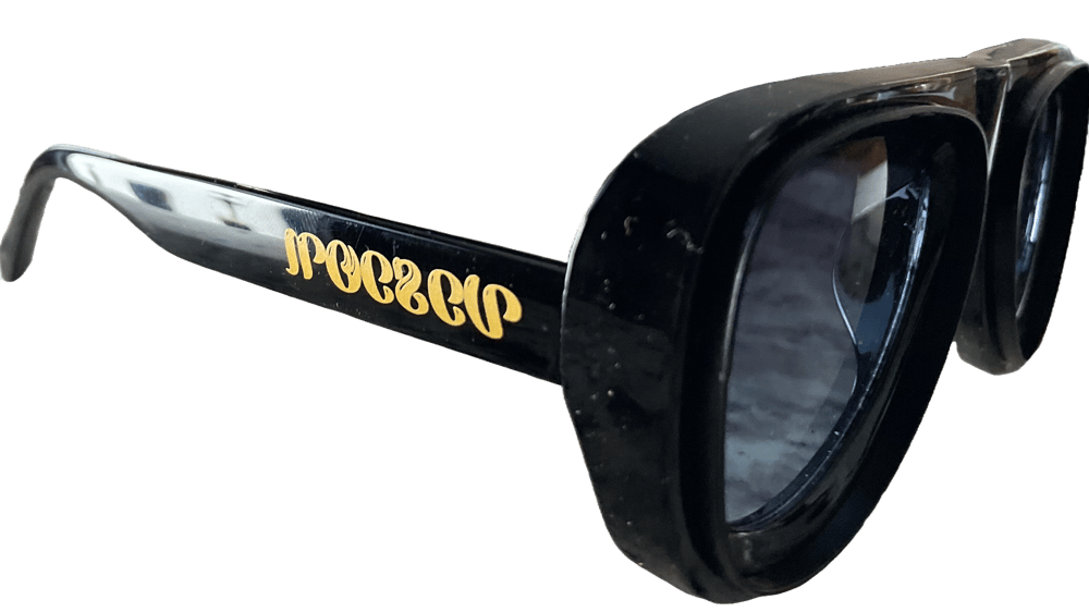 Detailed Pilot Vision Sunglasses "Vision" hand painted in gold on legs Glasses come with Ra Case
