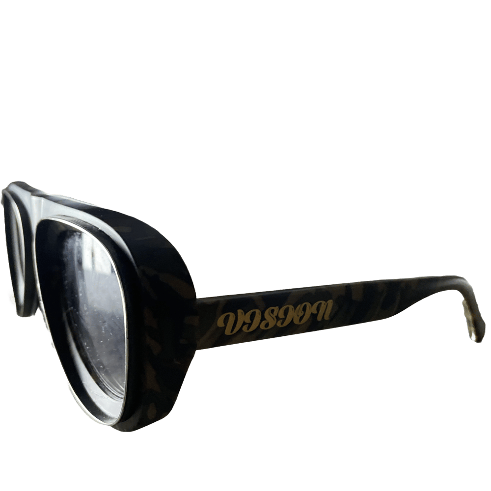 Detailed Pilot Vision Sunglasses "Vision" hand painted in gold on legs Glasses come with Ra Case